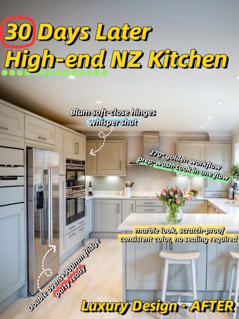 We help Kiwi homeowners get their dream kitchen without the chaos. Our **NZ kitchen makeover** process takes just 30 days, start to finish. No drawn-out delays, no supplier ghosting. Just a high-end result that fits your life.